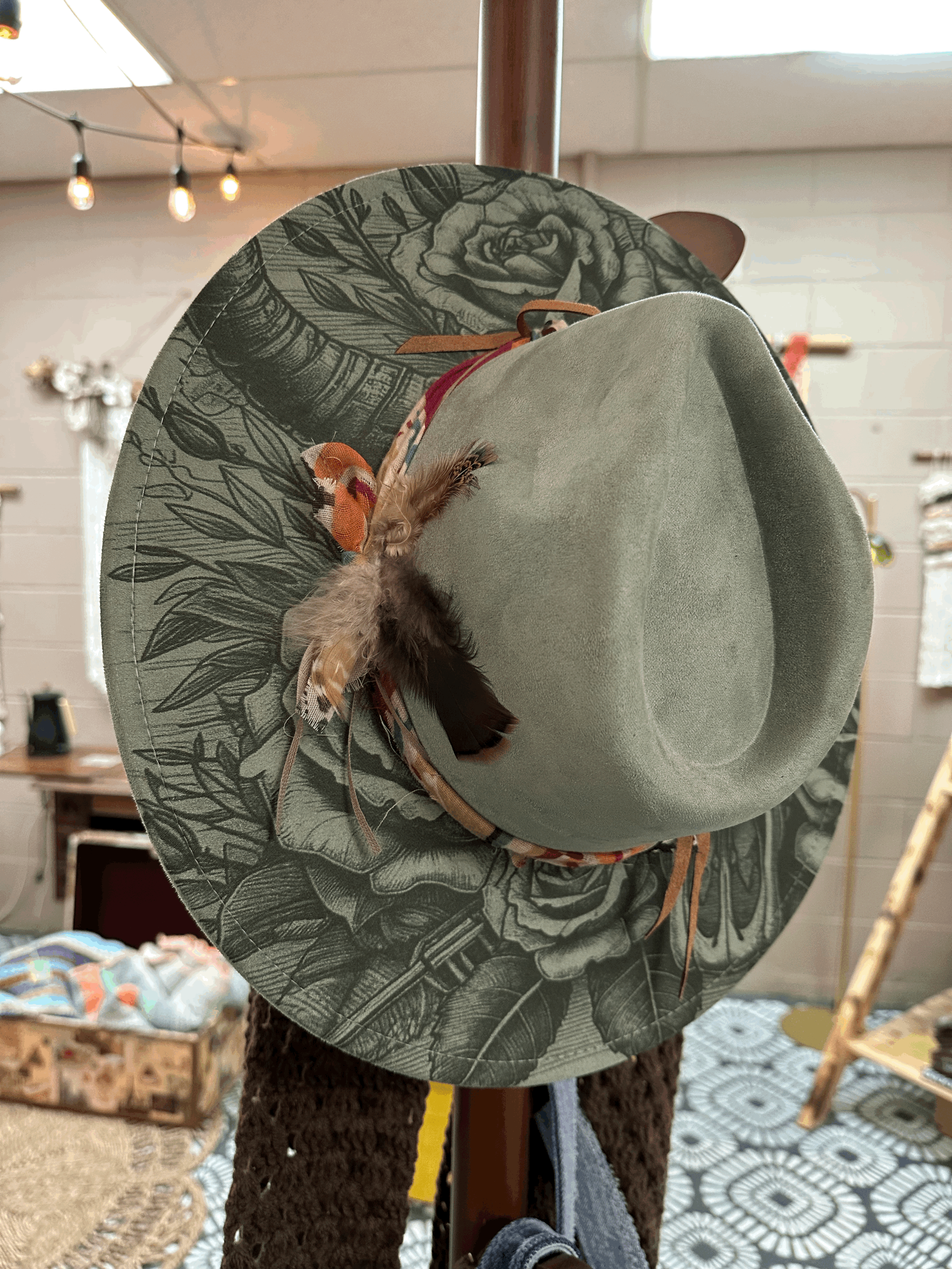 Categories: Select a Category Wearable Apparel Workshops Accessories Home Decor Macrame Herbal Tinctures Wearable Hand-Burned Artisan Hats $68.00 Limited Availability Black Sunflower (100% wool) Black Floral (100% wool) Black Aurora (100% wool) Sage Green Skull (Vegan) Black (100% wool) Tan (100% wool) Gray (100% wool) Add To Cart Added!